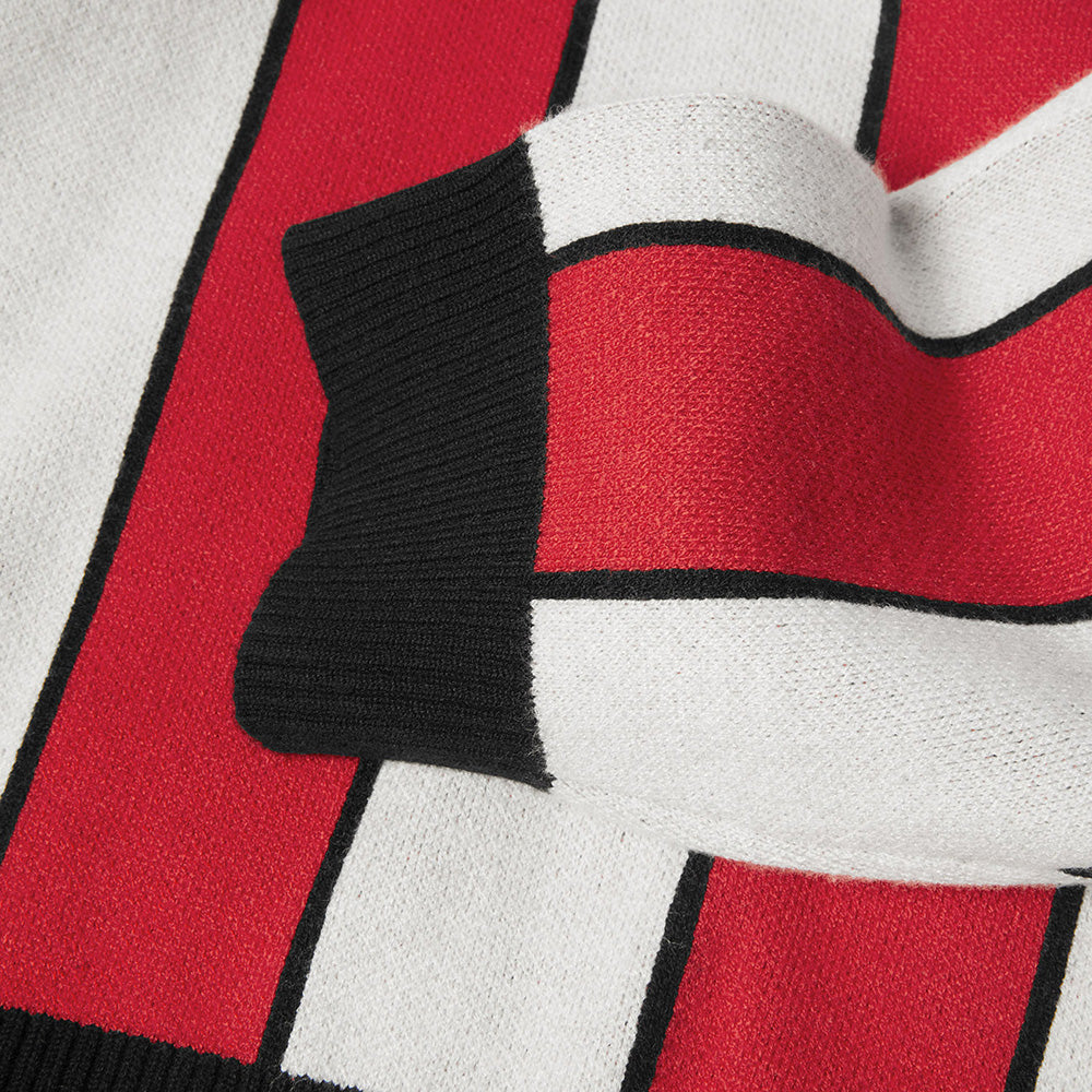 通気性のある混紡素材とジャカード編みを使用したサッカーシャツモチーフのセーター。