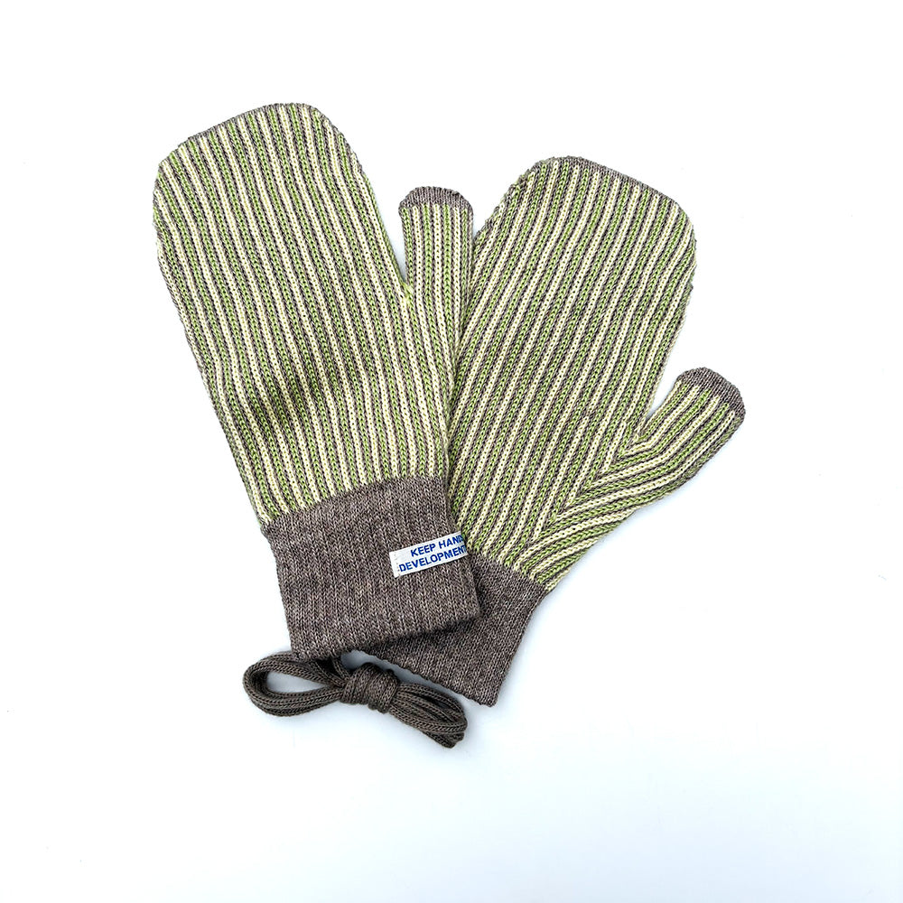 アップサイクルウールと廃棄ペットボトルを利用したリサイクルアクリルの糸を使用した手袋。