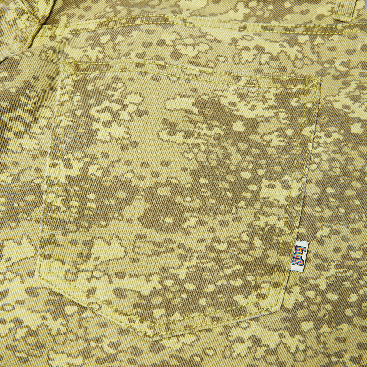 一見シンプル、その奥に個性。5ポケットデニムを、総柄カモプリントで仕上げた一本。