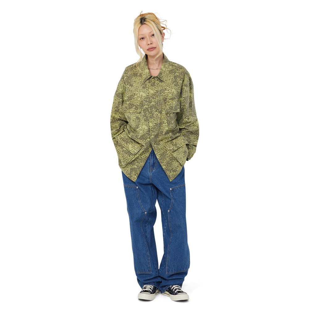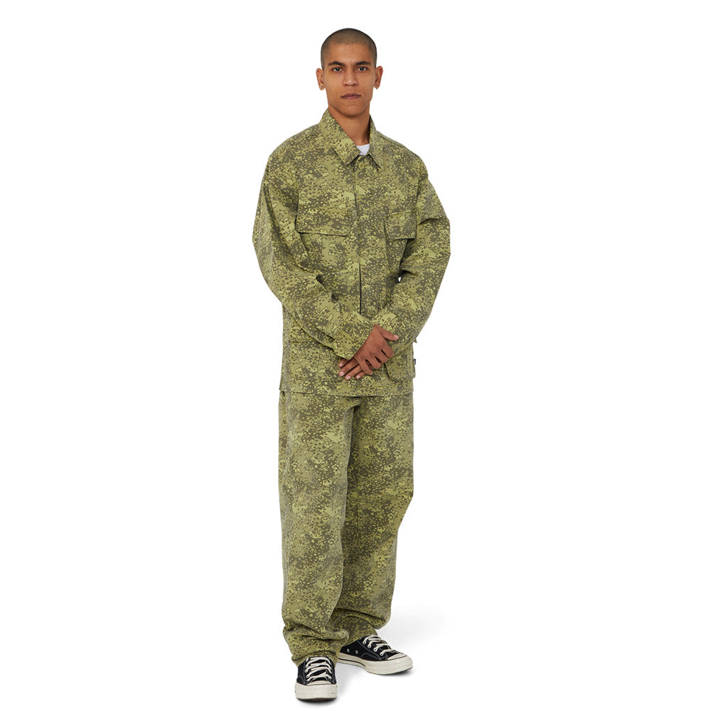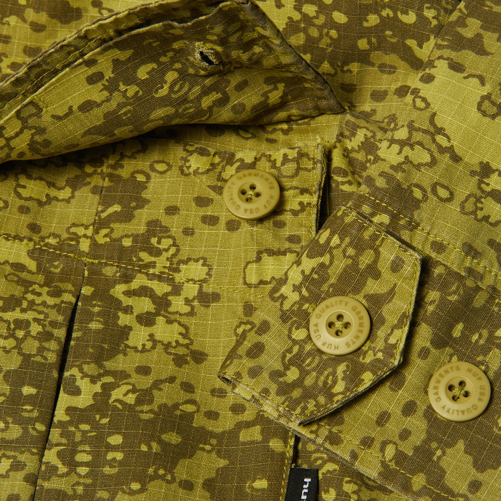 ミリタリー感とカジュアルさを融合。HUFオリジナルの総柄カモフラージュプリントとコットンリップストップ素材を使用したジャケット。